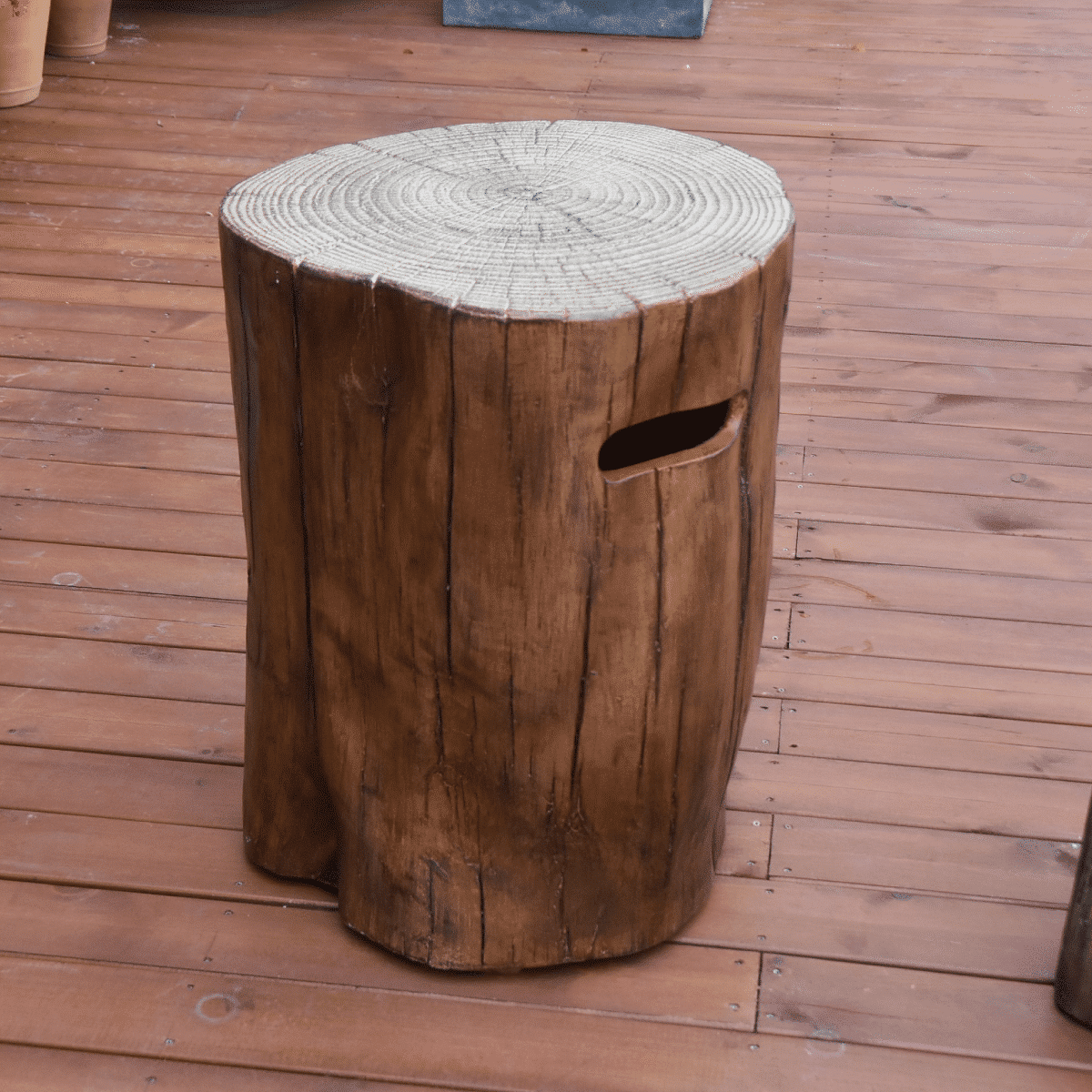 Ontdek de Elementi gasfles cover in een realistische boomstam look. Deze decoratieve hoes verbergt uw gasfles van 10 of 11 kg snel en stijlvol, perfect voor zowel universeel gebruik als bij Elementi vuurtafels. De cover is vervaardigd uit Eco Stone, een materiaal dat zorgt voor uitzonderlijke stabiliteit en een laag gewicht, met een overtuigende natuurlijke uitstraling. Dankzij de geïntegreerde handgrepen is het verwisselen van de gasflessen zeer eenvoudig.